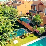 Villas Altos De Marbella med 3 sovrum har en terrass med utsikt över bergen samt en pool. Villan med 3 badrum, som ligger inom 5 minuters bilresa från Teatro Ciudad de Marbella, erbjuder pingpong.